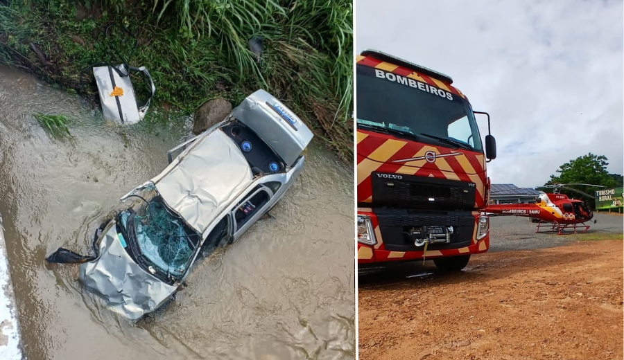 Carro cai de ponte na BR-470 em Rodeio e duas pessoas ficam feridas