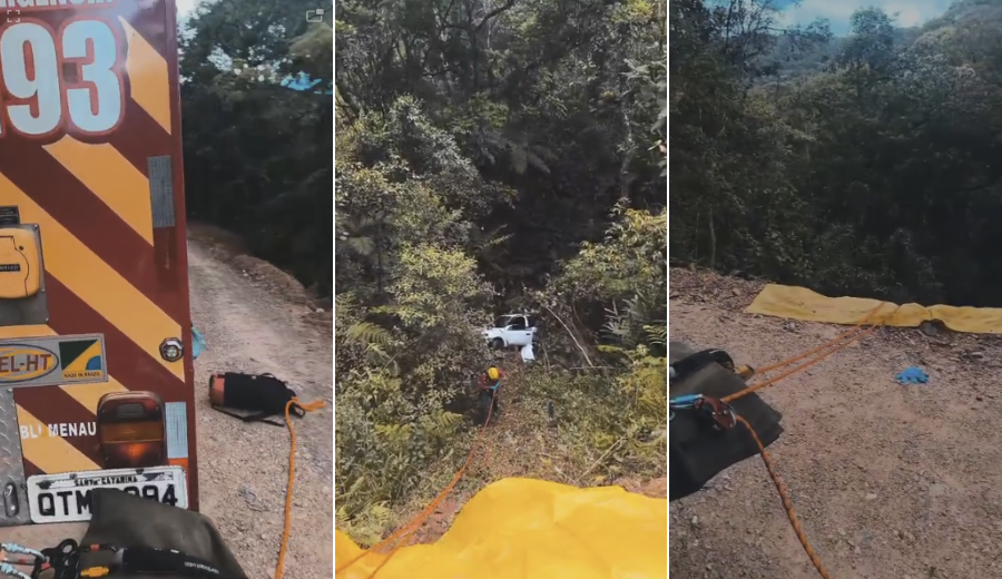 Motorista perde controle do carro e cai em ribanceira de 15 metros em Blumenau