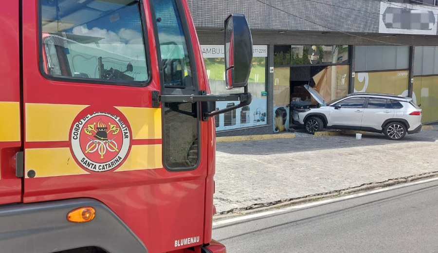 Carro colide contra fachada de estabelecimento em Blumenau