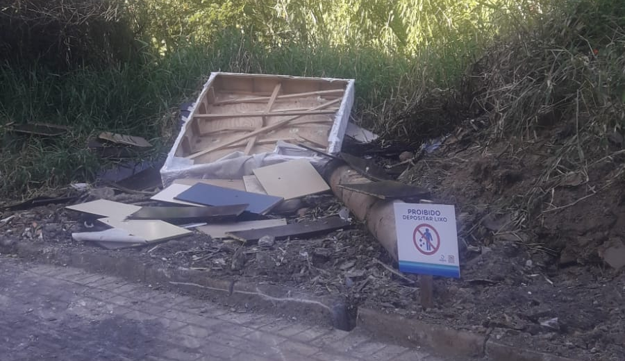 Placas são ignoradas e lixo volta a ser jogado em terreno no Badenfurt