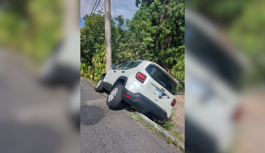 Carro sai da pista e atinge poste no bairro Escola Agrícola, em Blumenau