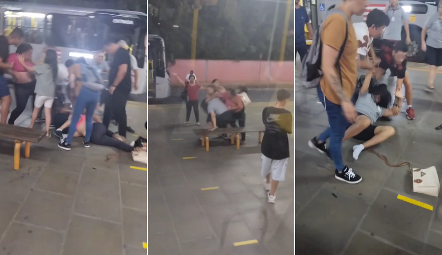No vídeo é possível perceber as mulheres desferindo socos e empurrões contra a mulher