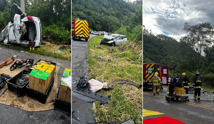 Motorista morre em colisão entre carros e caminhão na BR-470, em Apiúna
