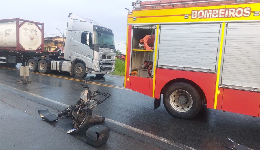 Motociclista morre depois de colisão com carreta na BR-470, em Blumenau