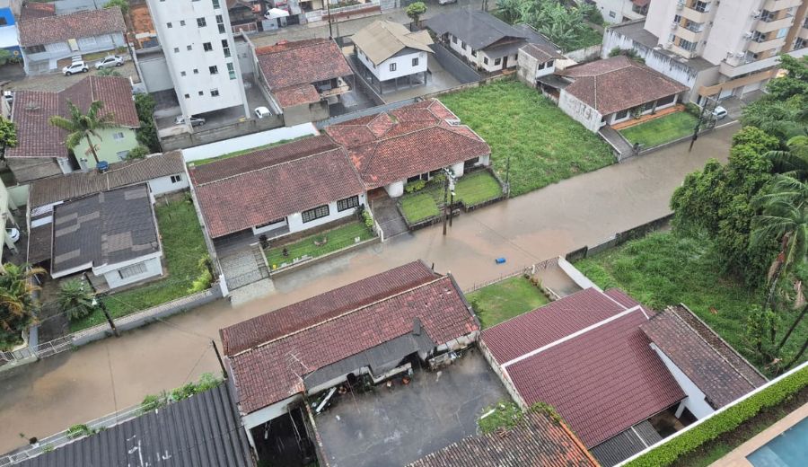 Chuva intensa provoca alagamentos em ruas de Blumenau neste sábado