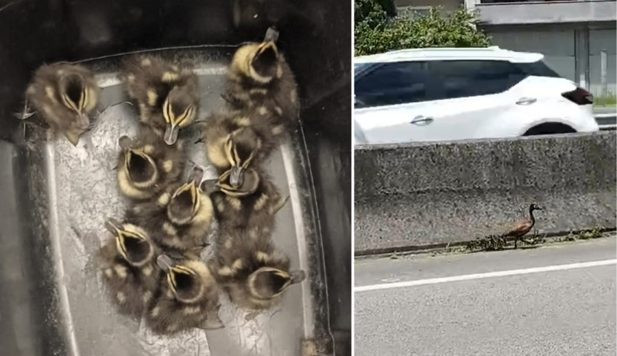 PRF salva mãe marreco e nove filhotes encurralados na BR-101