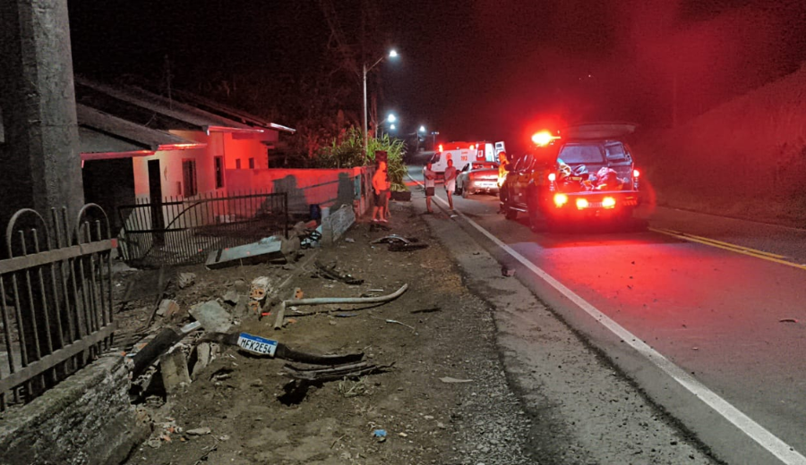 Dois homens ficam feridos após carro sair da pista na SC-477, em Rodeio