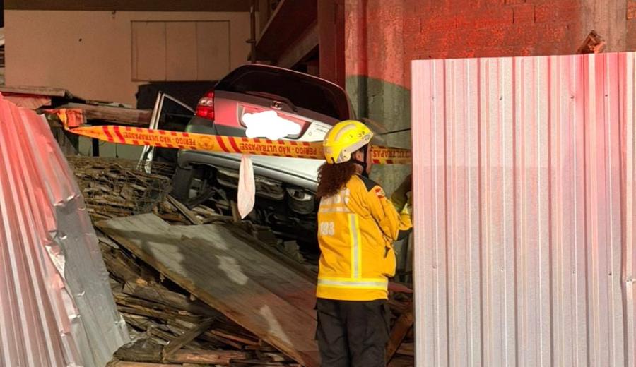 Motorista fica preso às ferragens após carro sair da pista e colidir contra obra