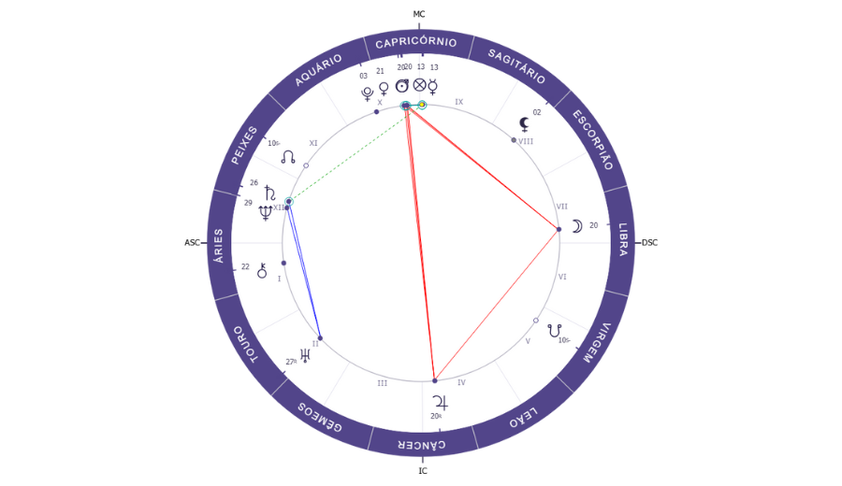 Mapa Astral do dia 10 de Janeiro de 2026, evidenciando o ‘cabo de guerra’ entre Júpiter em Câncer a Sol e Marte em Capricórnio: trabalho e família em evidência