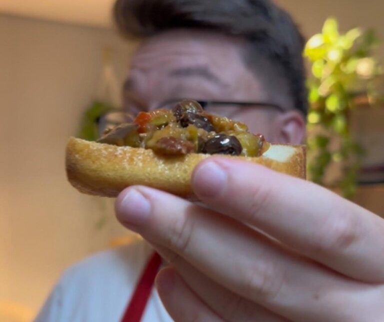 O segredo está em deixar a caponata no forno até que os vegetais fiquem bem dourados, quase caramelizados, sem perder a textura. A cada mordida, uma explosão de sabores é garantida: o salgado das azeitonas, a doçura das passas, a acidez do vinagre, e a cremosidade do azeite se harmonizam em uma combinação irresistível.