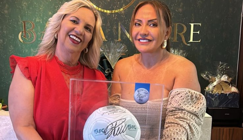 #CONQUISTA – Para coroar os quatro anos de sucesso da Barra Nobre no mercado imobiliário, Patrícia Munhoz reuniu os primeiros clientes para receber a cobiçada bola assinada por Cristiano Ronaldo. Destacamos Jaces Seguer com a empresária!
