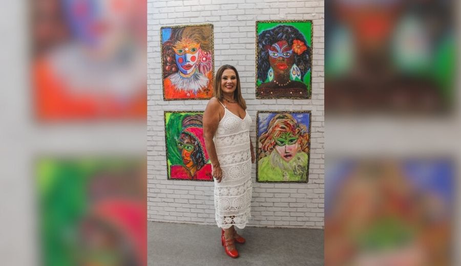 #ARTE – A artista plástica Nita Faces Brasil promove até o dia 31 de janeiro, no Jurerê OPEN, em Jurerê in, a exposição “Retalhos de Outros Carnavais”. São ao todo 20 obras onde a artista transformou o silêncio da Quaresma em cor e significado. São memórias costuradas em fios dourados, brilhos guardados e máscaras que encontram novo sentido.