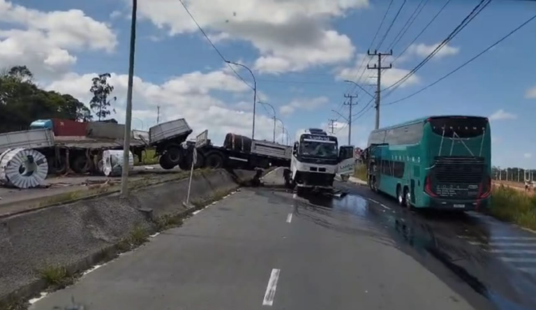 Um acidente de trânsito registrado por volta das 10h20 desta quarta-feira, dia 7, provocou interdição parcial da BR-101, no km 101, sentido Sul, em Balneário Piçarras, no Litoral Norte de Santa Catarina. A ocorrência mobilizou equipes da Polícia Rodoviária Federal (PRF) e de resgate.