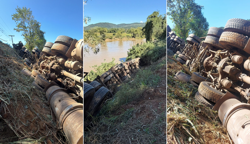 PortaBnu / Notícias / Caminhão bitrem cai em ribanceira e deixa motorista ferido em Ascurra