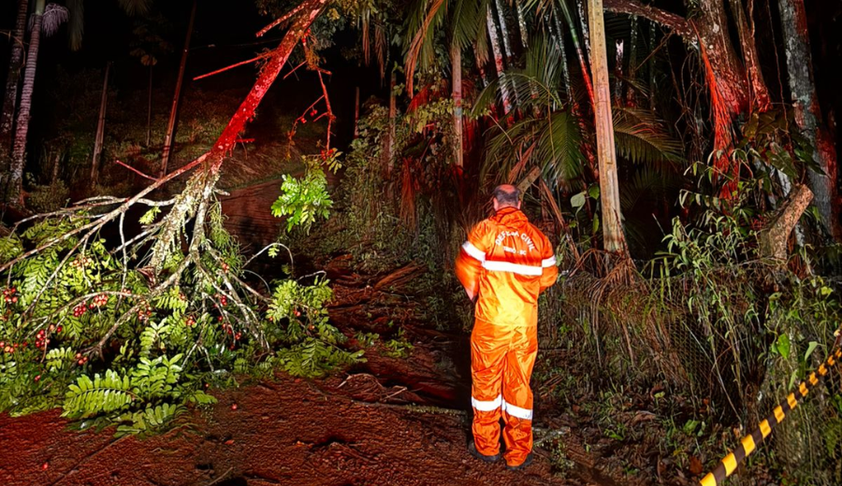 Em alguns pontos, a queda de árvores também atingiu a fiação, causando riscos de curto-circuito. Outros pontos da cidade também registraram falta de energia, como o bairro Itoupava Central.