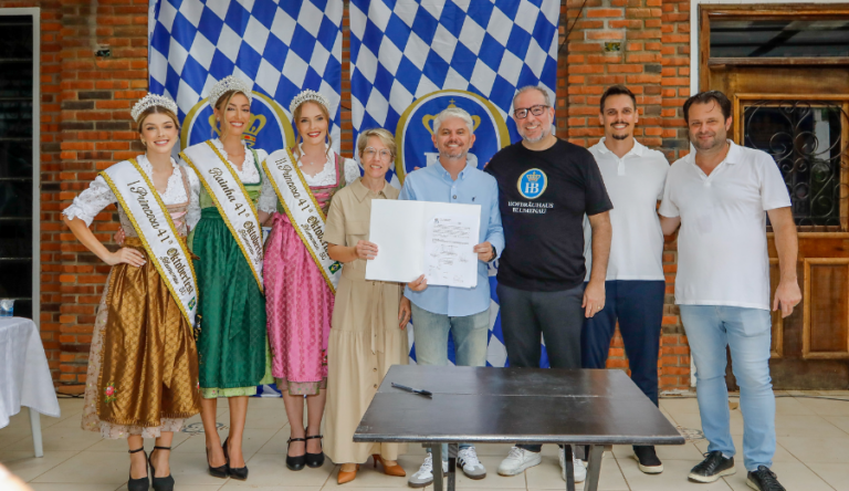 Foi assinada, simbolicamente, a concessão que marca a chegada da Hofbräuhaus ao Biergarten, na Praça Hercílio Luz, nesta segunda-feira, dia 12. A operação da cervejaria alemã no espaço será feita pela Makka Lounge Bar LTDA, representante oficial da marca no Brasil.