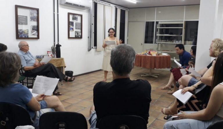 A proposta é reunir moradores em um ambiente leve e acolhedor para conversar e trocar experiências. A atividade, realizada desde 2018, acontece mensalmente e conta com mediação da professora Hanelore Sandner Campregher.