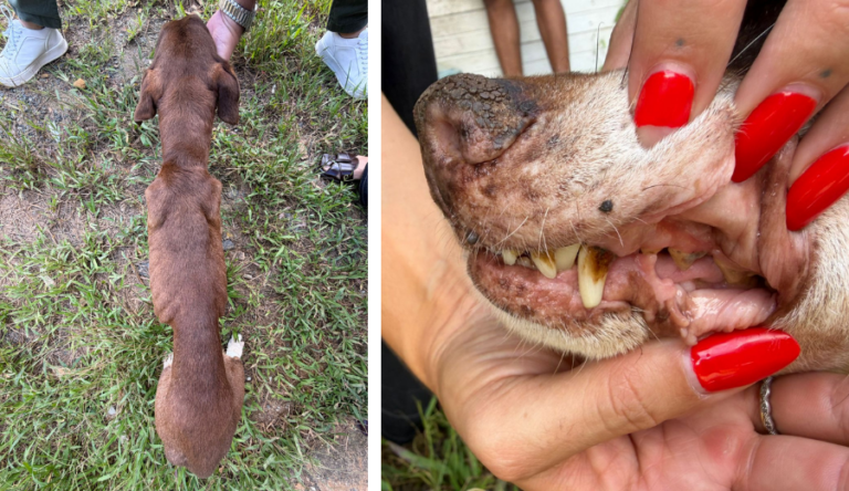 Segundo o relatório, durante o exame físico, foram observados sinais evidentes de emagrecimento extremo e desidratação. A cadela não estaria se alimentando adequadamente e os responsáveis teriam sido avisados sobre a necessidade de fornecer alimentação apropriada, como sachê, o que não havia ocorrido até o momento da vistoria.