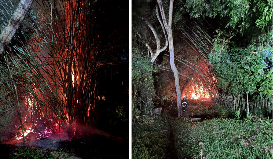 Os bombeiros voluntários de Ascurra, Apiúna e Rodeio foram acionados por volta das 21h43, deste domingo, dia 8, para atender uma ocorrência de incêndio em vegetação na rua José de Novaes, no centro de Apiúna.