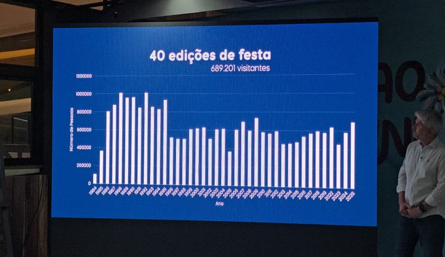 A edição de 2025 recebeu 689.201 visitantes e registrou recordes em diferentes indicadores. A pesquisa de público, encomendada à FURB, mostrou que o índice de recomendação da festa (NPS) chegou a 90, ante 86 no ano passado.