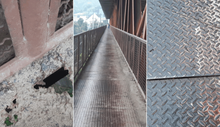 A preocupação não é recente. Ao longo dos últimos anos, a comunidade têm observado a deterioração avançar, especialmente no trecho central da passarela, onde as emendas metálicas apresentam falhas e ferrugem. “Está bem feio”, relatou um ouvinte à Rádio 106, que esteve no local nesta terça-feira, dia 2.