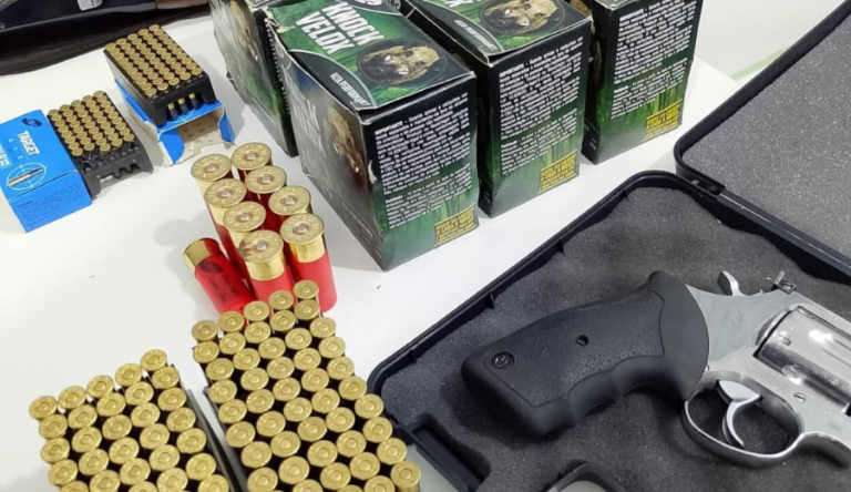 A ação ocorreu após a Justiça conceder medida protetiva com base na Lei Maria da Penha. Durante as buscas no imóvel, os policiais localizaram e apreenderam um revólver calibre .38, uma espingarda calibre 12, além de 374 munições.
