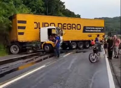 Acidente com caminhão bloqueia trânsito na BR-470 em Blumenau