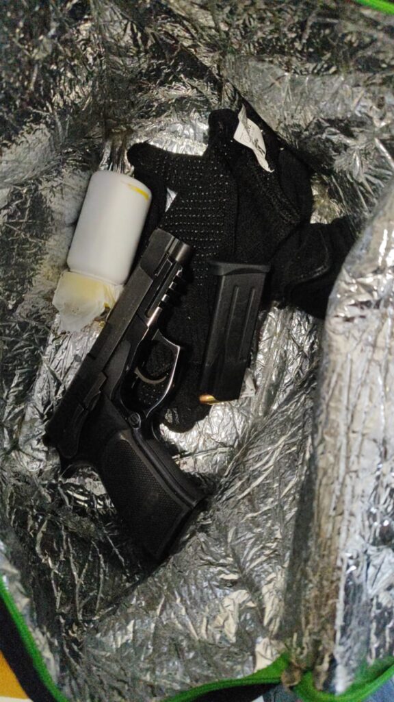 Um dos suspeitos foi preso em Doutor Pedrinho, outro estava na cidade de Ituporanga. Durante a abordagem do terceiro suspeito, a polícia constatou que a motocicleta que ele usava era roubada, sendo apreendida. A polícia foi até a casa do homem, onde encontraram uma arma de fogo calibre 9mm, munições, aparelhos celulares e documentos falsos.