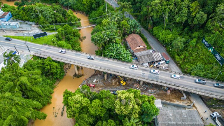 A Ponte Santa Catarina, no Norte de Blumenau, voltou a ser liberada no domingo depois de ficar fechada por alguns dias. Segundo a Prefeitura, a interdição foi programada para o recesso de janeiro, quando o fluxo de veículos costuma ser menor, para acelerar serviços de drenagem e a recomposição da base do pavimento nos acessos da ponte.