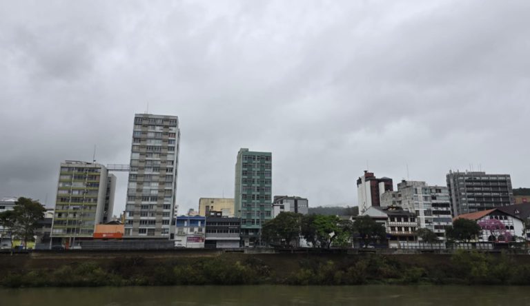 Nesta segunda-feira, dia 9, a circulação marítima atua com mais intensidade direcionada para o leste de Santa Catarina, condição que deixa o céu variando entre nublado a encoberto ao longo do dia.