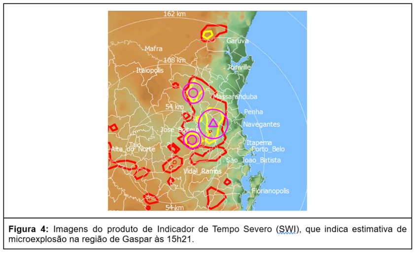 E, depois de uma avaliação dos impactos, com base nas imagens dos locais atingidos e na análise dos dados do radar meteorológico do Vale, foram identificados indícios da ocorrência de uma microexplosão na região do bairro Bela Vista, que é uma forte rajada de vento que desce rapidamente de dentro de uma tempestade em direção ao solo. Ao tocar o chão, o vento se espalha para todos os lados, podendo derrubar árvores, destelhar casas e causar danos em poucos minutos.