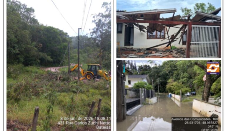 Durante a tarde desta quinta-feira, dia 8, o forte calor, combinado com a atuação de uma frente fria no oceano, favoreceu a formação de tempestades severas no Vale do Itajaí, provocando alagamentos e enxurradas em diversos pontos de Gaspar.