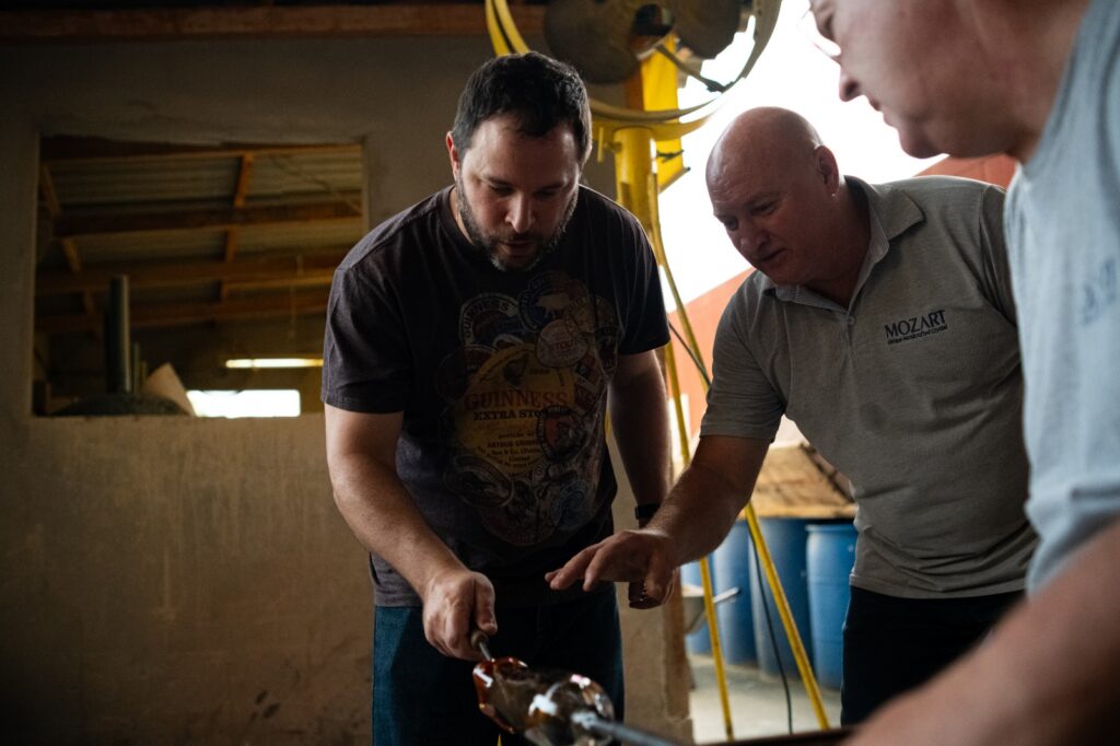 Ao longo da experiência, os visitantes acompanham também uma visita guiada por toda a fábrica, desde a fundição da matéria-prima até as etapas de corte, polimento, lavação e lapidação, fases que transformam o cristal bruto em uma peça de alta qualidade e acabamento impecável. Essa imersão permite compreender o trabalho dos artesãos e a complexidade envolvida em cada peça da Mozart Crystal.