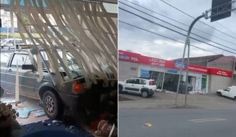 A ação, que aconteceu por volta das 17h, foi filmada por pessoas que passavam pelo local (assista abaixo) e por quem estava dentro da loja. É possível ver o condutor investindo diversas vezes conta o estabelecimento, que teve diversos estragos. A vidraça da fachada ficou totalmente destruída, assim como alguns móveis dentro do estabelecimento. As pessoas dentro da loja aparentavam estar amedontradas.