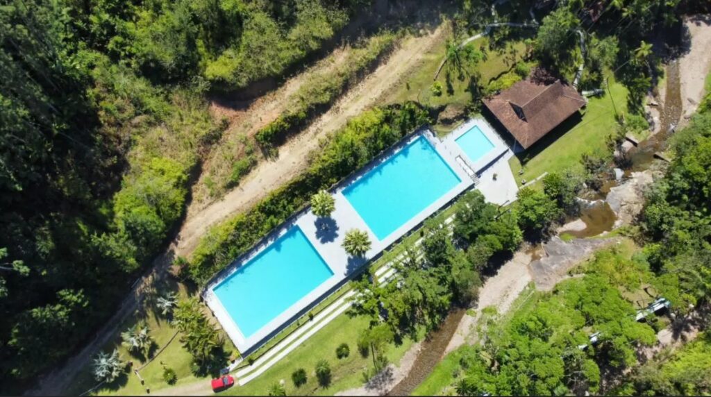 O Recanto Arraial tem três piscinas para adultos e duas para crianças, dois toboáguas e um toboágua infantil. O espaço também tem a “ponte do rio que cai”, que é uma opção divertida. O estabelecimento também tem cancha de bocha, mesa de sinuca e estrutura de bar e restaurante.