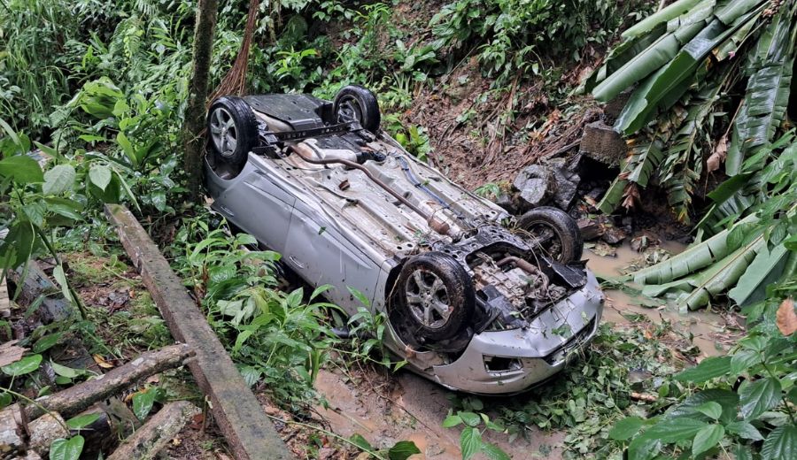 Carro com casal de idosos cai em ribanceira na SC-108, em Blumenau