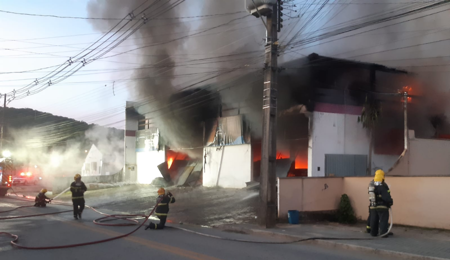 Bombeiros passam oito horas combatendo incêndio de grandes proporções em fábrica de Timbó